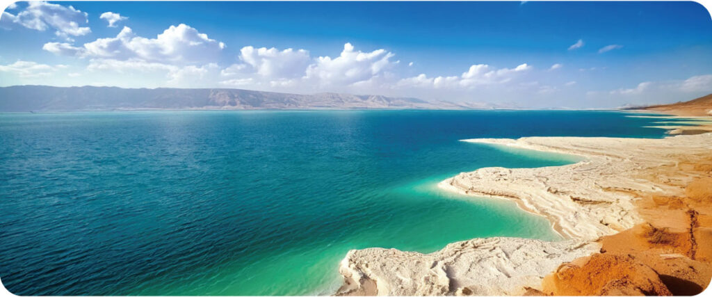 世界で最も塩分濃度が高い湖の一つで、イスラエルとヨルダンの間に位置しています。湖の塩分濃度が高いため、誰でも浮くことができる不思議な体験ができます。