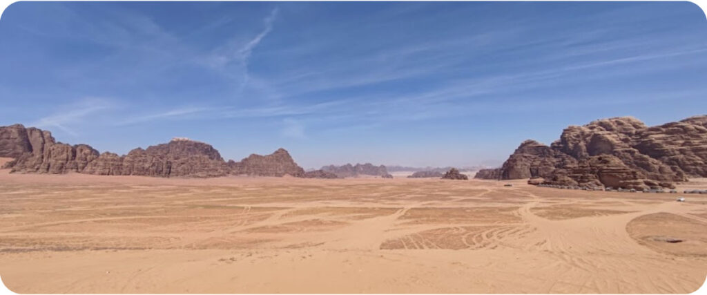 ワディ・ラムは、広大な砂漠と奇岩群が広がる美しい自然の景観が特徴の場所で、「惑星の表面のような景観」とも称されています。この地域は映画『マーズ』や『ローグ・ワン』の撮影地としても有名です。