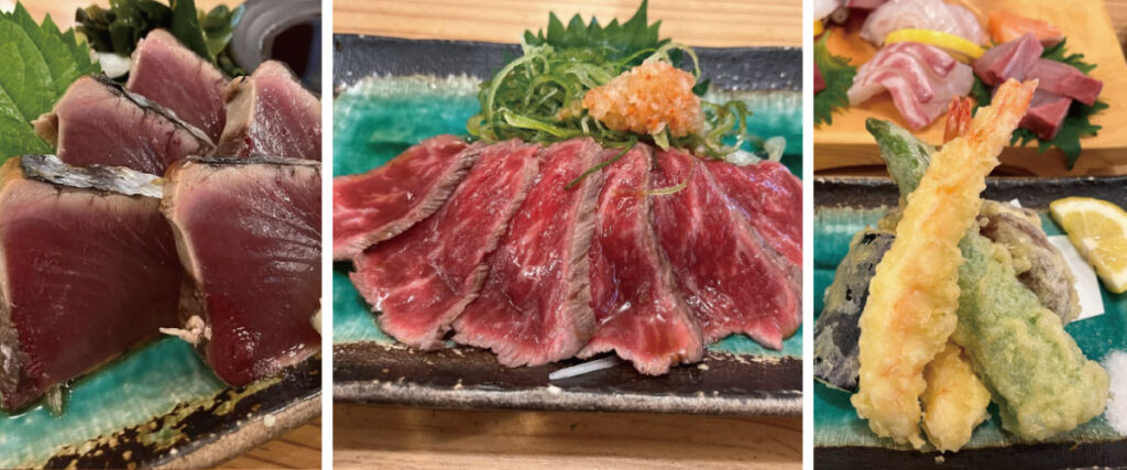 海鮮巻きや天ぷら、焼き鳥、ジビエ料理まで多彩なメニューが並び、特に炭火焼きならではの香ばしさが際立つ串焼きは絶品。猪肉のすき焼きやてっちり鍋(とらふぐ)など、冬限定の料理が味わえるのも魅力の1つです。