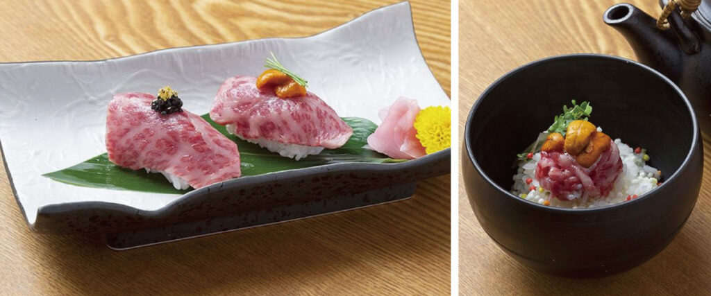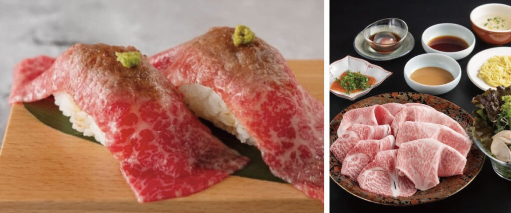和牛は産地や生産者まで徹底して厳選。たとえば「松阪牛」は霜降り度を示すBMS値10以上、「近江牛」は11〜12に限定するなど、独自の基準で最高品質のみを提供しています。