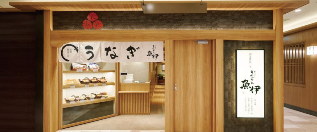 慶応三年(1867年)創業の「炭焼きうなぎの魚伊」の梅田店。阪神百貨店梅田本店9Fに2021年にオープンしました。