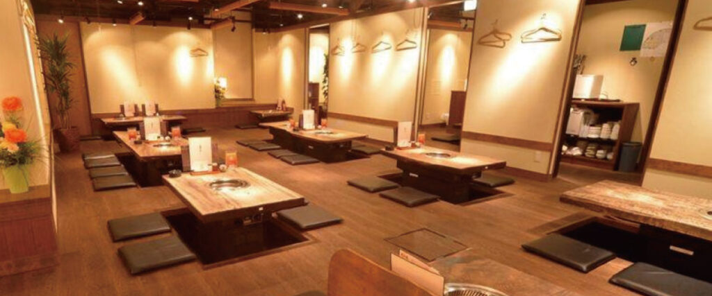 個室は2名から最大18名まで対応可能。無煙ロースターと高性能換気システムを完備しており、焼肉特有のにおいを気にせず快適に食事が楽しめます。