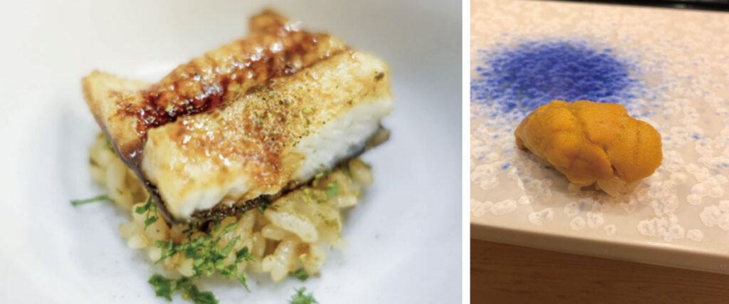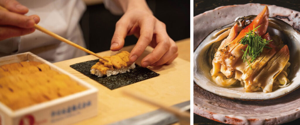 メニューはおまかせコースのみで、明石のヒラメ、長崎イカ、三崎マグロ、マコガレイ、熊本海域の鰻、鮑、雲丹など、季節ごとに旬の食材を厳選しています。また、高級店ながら、敷居の高さを感じさせないところもポイント。