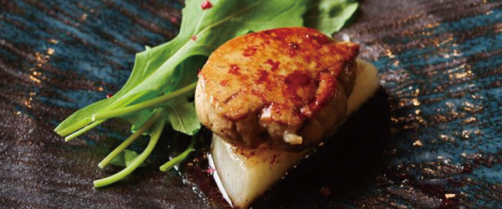 店内はシックで落ち着いた空間が広がり、特別なシーンにもふさわしい雰囲気。目の前でシェフの調理を見られるカウンター席のほか、プライベートに過ごせる個室も用意されています。