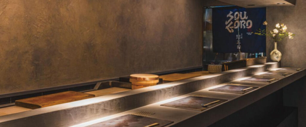 アクセスはJR「北新地駅」から徒歩約3分。和の趣を大切にした店内はカウンター席中心のレイアウトで、職人の技を間近に感じられる、臨場感ある空間となっています。また、4名用の半個室もあり、プライベート感のある食事も可能です。