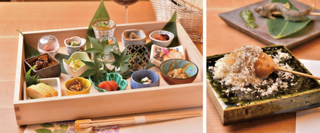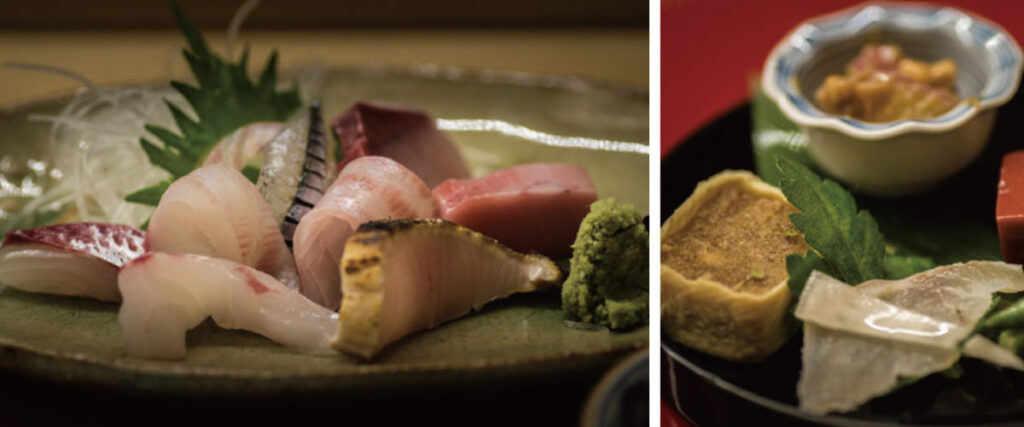 刺身や煮物、焼き物など、季節の移ろいを感じる料理の数々は、味覚だけでなく視覚でも楽しめる芸術品。伝統的な京料理の技法を守りながらも、現代的なアプローチを加えた料理で、訪れるたびに繊細さと美しさに驚かされます。