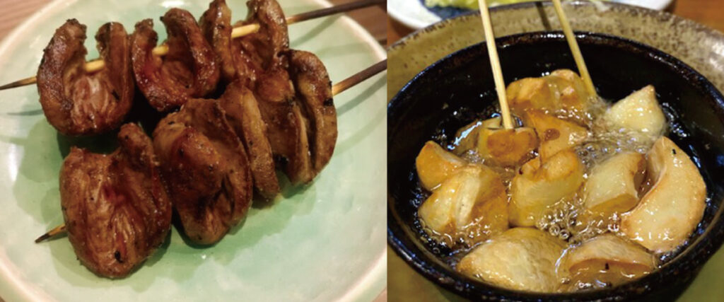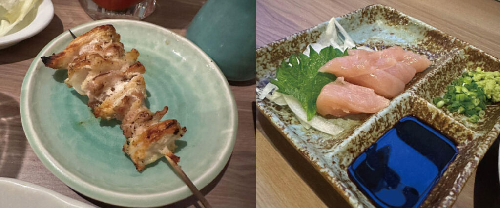 アラカルトの焼き鳥は一串150円~200円台と非常にリーズナブル。朝引きの定番焼き鳥、おろしポン酢の「みぞれ串」、チーズ串、野菜の串焼きまで、多彩なメニューが用意されています。また、「やみつきになるレベル!」と評判の手羽先や、鮮度抜群のタタキや肝刺しなど、焼鳥以外の鳥料理も好評です。