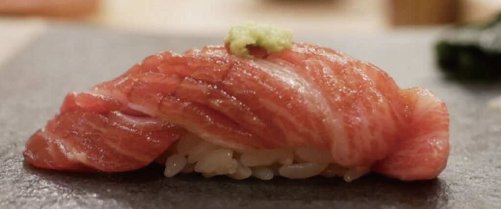 メニューは「おまかせコース」(27,500円)のみ。季節のつまみから始まり、握りへと移る流れは緻密に計算され、味わいもテンポも申し分なし。地元産の大トロ、鮪、こはだ、ぶり、ホッケ、ボタン海老、にしんなど、多彩なネタが揃います。