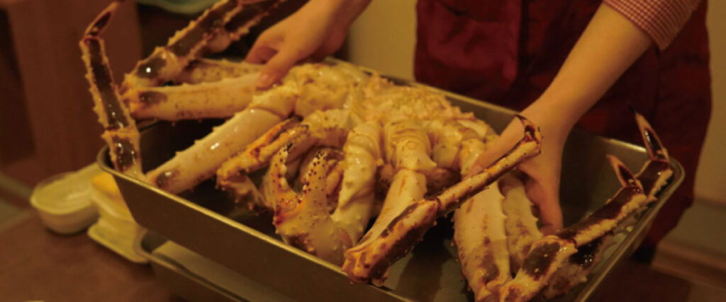 定番の蟹料理だけでなく、高級珍味の「タラバの内子焼き(生の蟹の卵)」や、厚岸産の貝牡蠣、北海大ぼたん海老や小樽産塩水バフン雲丹の刺身盛り合わせなど、北海道の旬の海鮮メニューも充実。