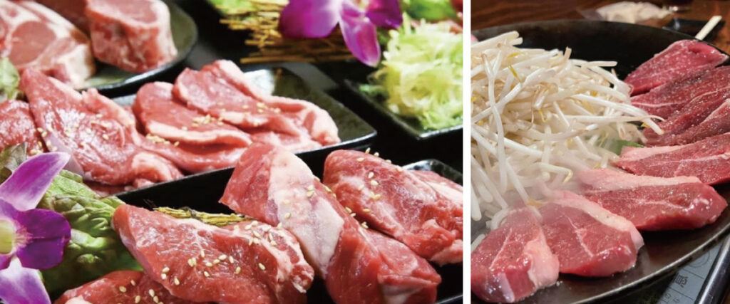 契約牧場から一頭買いする北海道産生ラムや、柔らかくジューシーなオーストラリア産生ラム、登別産エゾシカ肉など、様々な種類のジンギスカン肉を取り扱っています。