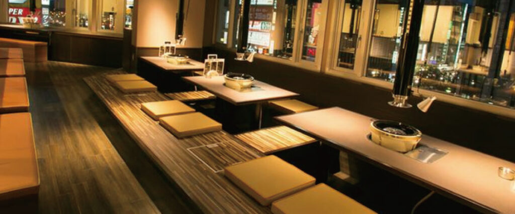 すすきの駅から徒歩約1分という絶好のロケーションにあり、ガラス張りの店内からはすすきのの夜景を一望できます。温かみのある照明とモダンなデコレーションが施された居心地の良い空間で、カウンター席、テーブル席、小上がり席など合計55席を完備。最大5名と7名までの完全個室もあり、様々なシーンでの利用が可能です。