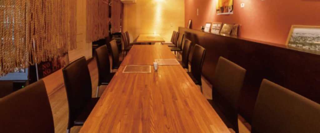 店内はウッド調のシンプルな内装。カウンター席やテーブル席が用意されており、お1人様でも訪れやすい雰囲気。スタッフの接客にも定評があります。