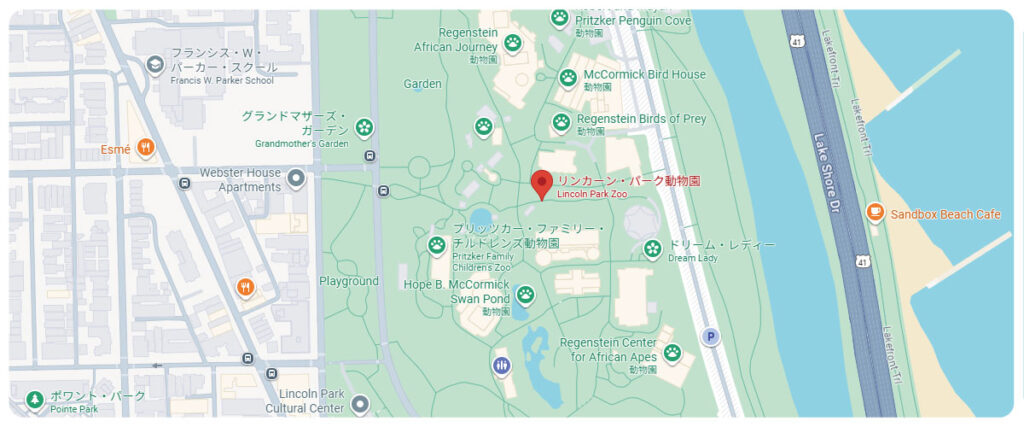 リンカーン・パーク動物園は、シカゴ最大の公園「リンカーン・パーク」の一角にあります。広大な緑地に囲まれた環境で、動物だけでなく 美しい庭園や池、散歩道 も楽しめます。園内には四季折々の花々が咲く「リンカーン・パーク・コンセルヴァトリー(温室)」もあり、観光やリフレッシュにぴったりです。