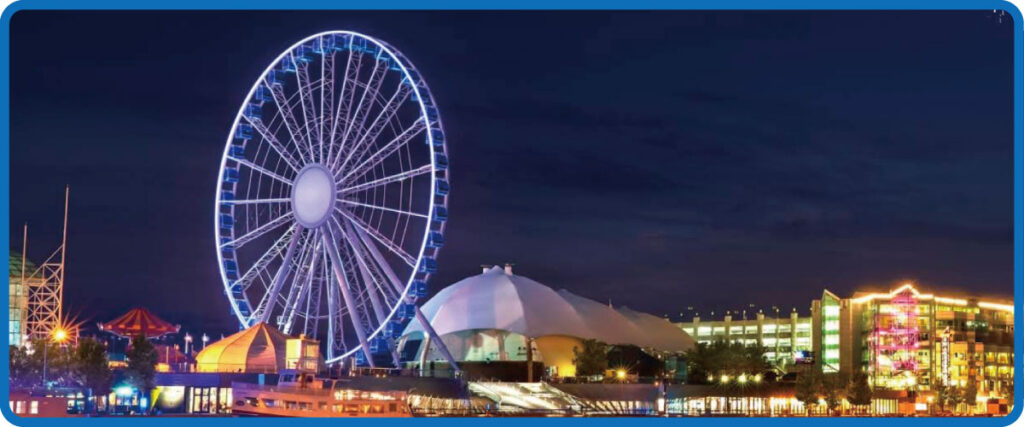 レイク・ミシガンに約1キロ突き出した巨大な桟橋で、年間800万人以上が訪れるシカゴ随一の観光名所です。