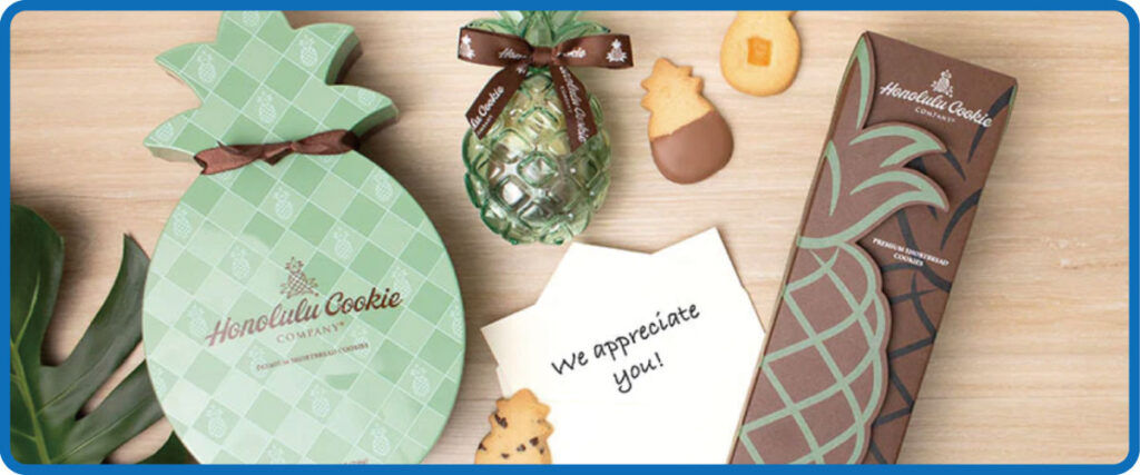 パイナップル型のクッキーはハワイ土産の定番。個包装で配りやすく、限定フレーバーも豊富。