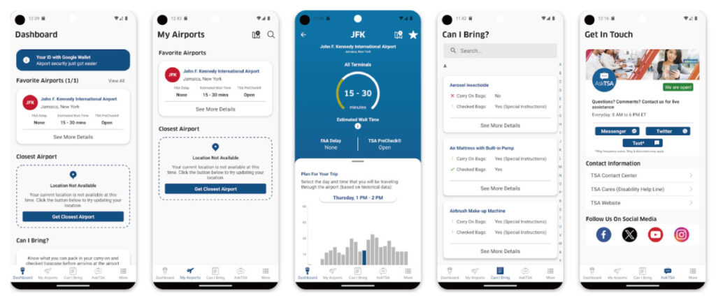 MyTSA は、米国運輸保安局(TSA)が提供する公式アプリで、主に以下の情報を提供しています。