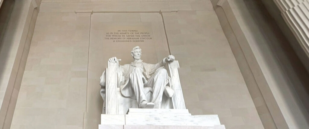 堂内の中心には、高さ約6メートルにも及ぶリンカーン大統領の巨大な座像が設置されており、その静かで威厳に満ちた姿は訪れる人々を圧倒します。像の両側には、南北戦争期におけるリンカーンの功績や、奴隷解放に関する歴史的演説「ゲティスバーグ演説」や「第二次就任演説」の全文が刻まれており、アメリカの歴史と民主主義の精神を感じることができます。