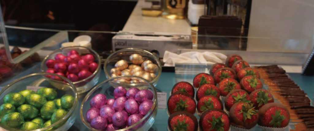 ショーウィンドウには芸術品のように並ぶチョコレートが並び、店内では本店限定のアソートや、目の前で仕上げてくれるいちごのチョコディップなどを楽しめます。観光で歩き疲れた時に立ち寄れば、甘く贅沢なひとときが待っています。