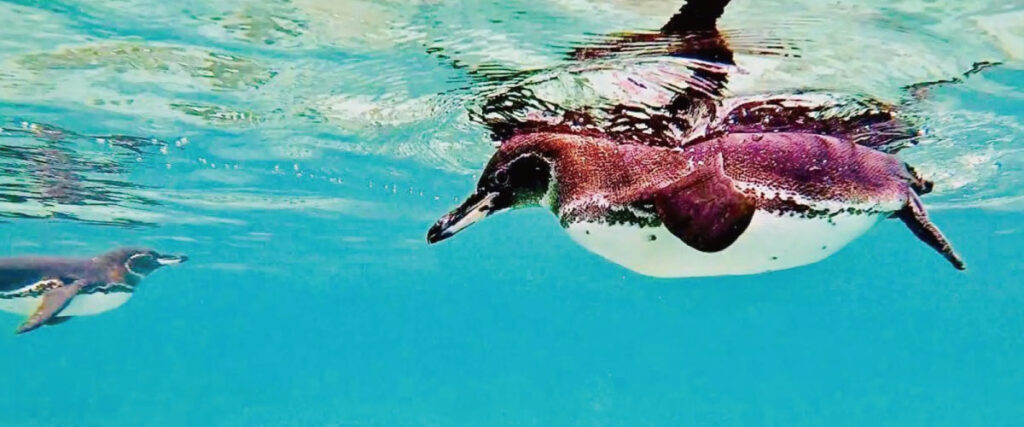 サンタクルス島やイサベラ島周辺では、ウミガメやアシカとともにペンギンが登場することもあり、まさに地球の楽園です。