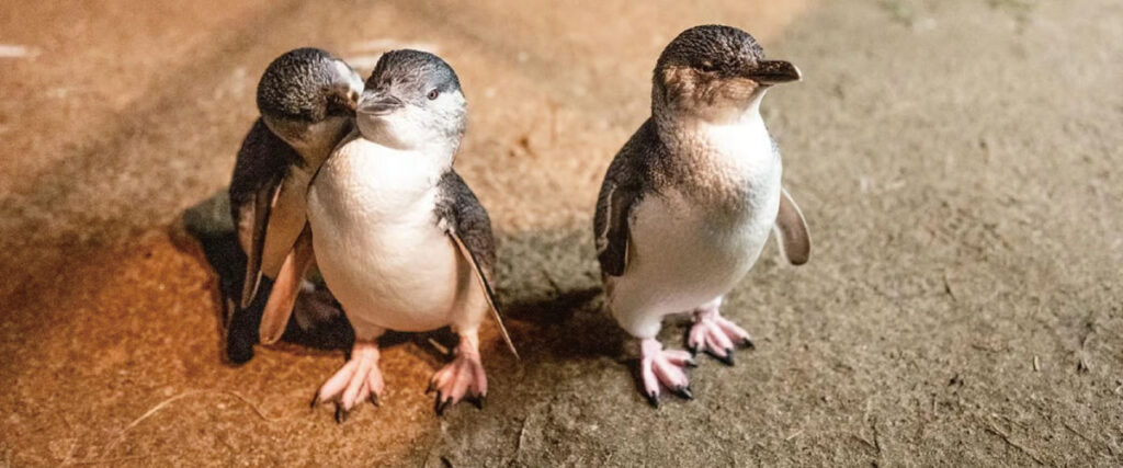 体長わずか30cmほどの小さなフェアリーペンギンたちが、波打ち際をとことこ歩く姿はまさに癒しそのもの。