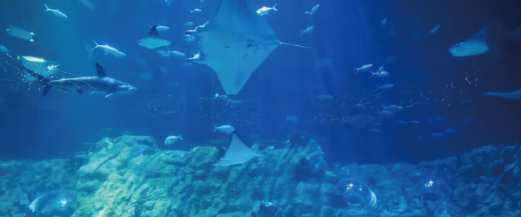 巨大水槽のグランド・アクアリウム(The Grand Aquarium)では、サメ・エイ・熱帯魚など5000種以上の海の生き物に出会えます。