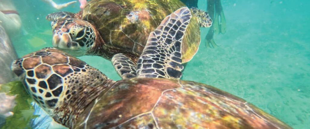 ビーチ近くで泳いでいる野生のウミガメを目にすることも珍しくなく、運が良ければ一緒に泳ぐことも可能!