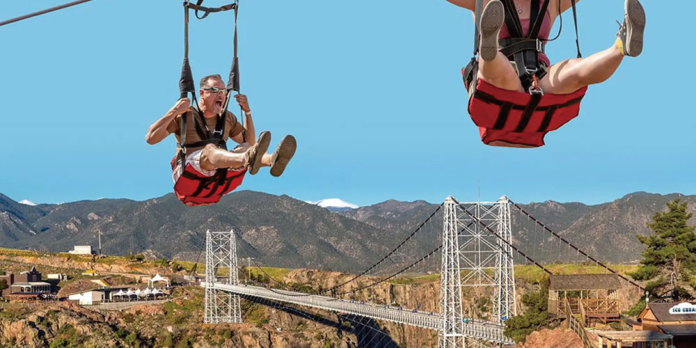 アメリカでもトップクラスの高さと長さを誇るジップライン。谷を一気に滑空する超スリリングな体験。