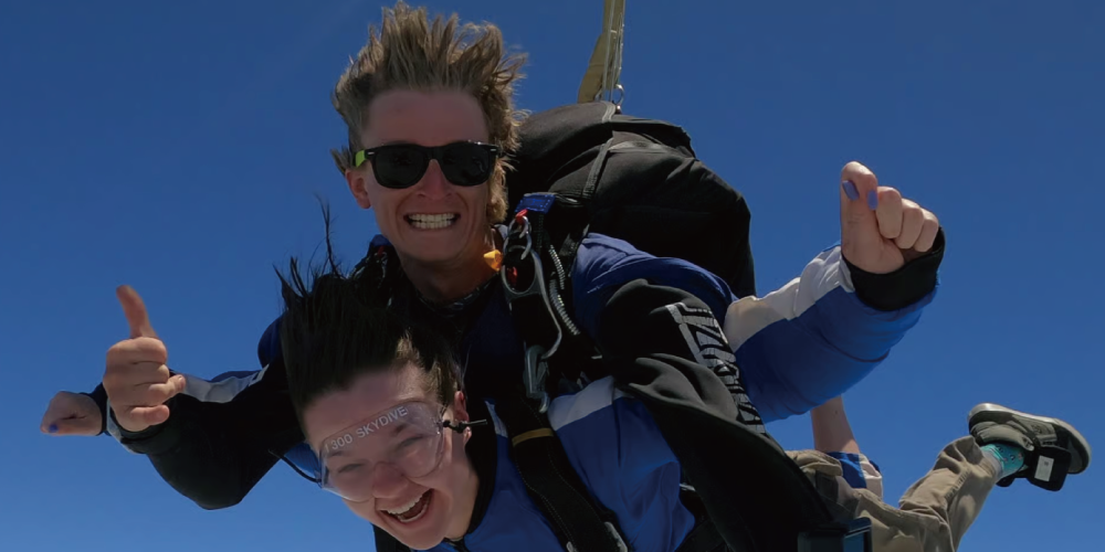 スカイダイビングは、自由落下のスリルだけでなく、パラシュートが開いた後の穏やかな降下も楽しめます。