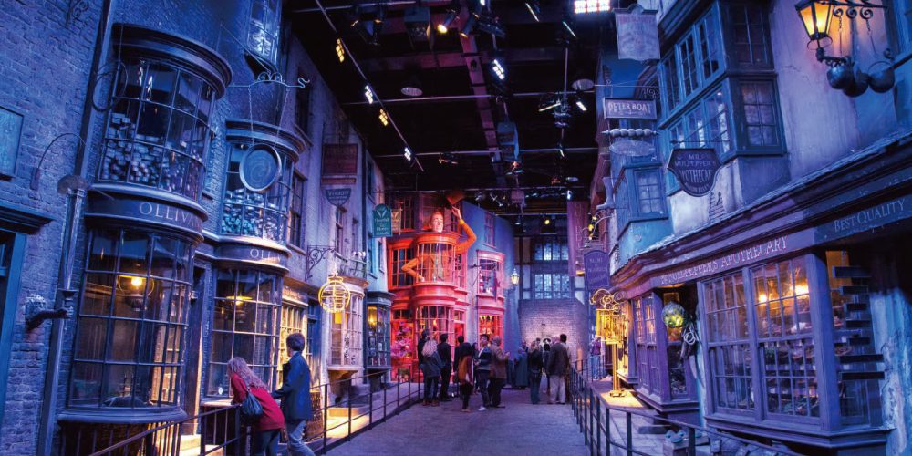 映画の撮影セットをそのまま保存しており、ホグワーツ城の大広間、ダイアゴン横丁、グリンゴット魔法銀行、ホグワーツ特急など、映画でおなじみの空間を歩きながら体験できます。