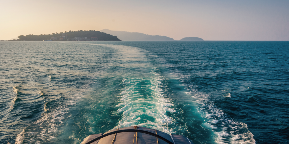 ボートから見えるエメラルドグリーンの海は、リペ島到着前から旅の気分を高めてくれる