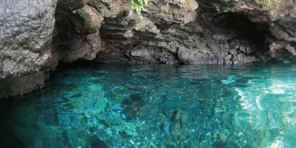 青く透き通った水が湧き出す 淡水の洞窟プール。