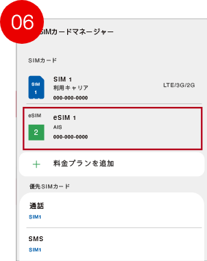 <注意事項>・eSIM設定用のQRまたはアクティベートコード読み込み時より利用開始となる場合がございます。eSIMの開始タイミングに関して、「プラン詳細」の「eSIM有効期限」をご確認ください。ご利用開始後の一時停止はできません。・eSIM情報を読みとり後、繋がらない場合でも絶対にeSIM情報の削除は行わないでください。もし削除された場合に、eSIMの再発行はお受付できかねます。